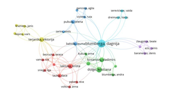 The interrelationships between authors in the literature are the main point discussed within the scope of co-authorship analysis. Figure 3 reveals the image of the co-authorship analysis on the European Green Deal. When Figure 3 is examined, it is seen that the author who is most open to cooperation in co-authorship is Dagnija Blumberga. In addition, it is seen that a total of 2344 researchers are working on this subject within the scope of the analysis. Considering that there are a total of 688 publications on this subject, it becomes clear that co-authorship on the subject of Reconciliation is widespread. It can be evaluated that this situation may be due to the fact that the European Green Deal is an interdisciplinary study subject.