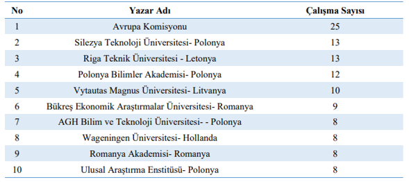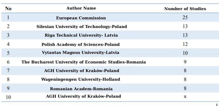 Finally, Table 5 lists the institutions that have done the most work on this subject. As a result of the analysis, it is seen that the most studies in this field are carried out by the European Commission, Silesian University of Technology (Poland) and Riga Technical University. The fact that the work is mostly carried out by the European Commission can be considered as the EU undertaking to ensure the dissemination of the Agreement. Among the institutions that carry out the most work, Poland stands out, which is the country that carries out the most work. However, Figure 2 shows that the other two countries that carry out the most studies are Italy and Spain, while the institutions in these countries are not included in Table 5. This means that research in Italy and Spain is carried out by different institutions.