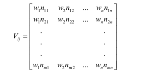 After determining the weight values (Wᵢ) related to the evaluation factors, the values in each column of the matrix are multiplied by the weight value to obtain the weighted normalized value Vᵢⱼ . The Vᵢⱼ matrix is as follows.
