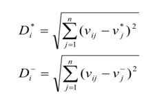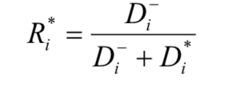 Rᵢ*, the closeness coefficient, shows the proximity of the alternatives to the positive ideal solution point and is calculated through the following equation.