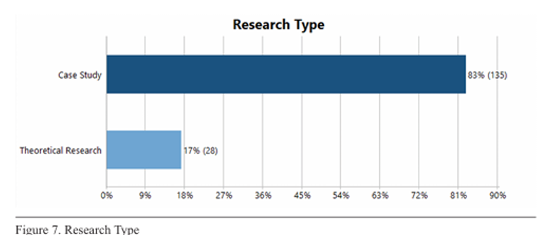 Regarding the research type, the articles are analyzed based on the keyword classification criteria of Aydınlı and Mathews. Accordingly, articles that used theoretical terms in their keywords are classified as theoretical, while studies that applied a theory in a particular country, region, or event are classified as applied/case studies. The analysis shows that almost 17% of the articles were theoretical, while 83% were case studies. It also reveals that there has been a clear shift towards case studies since Kinnvall’s study in 2004, which introduced the concept of ontological security to international relations.